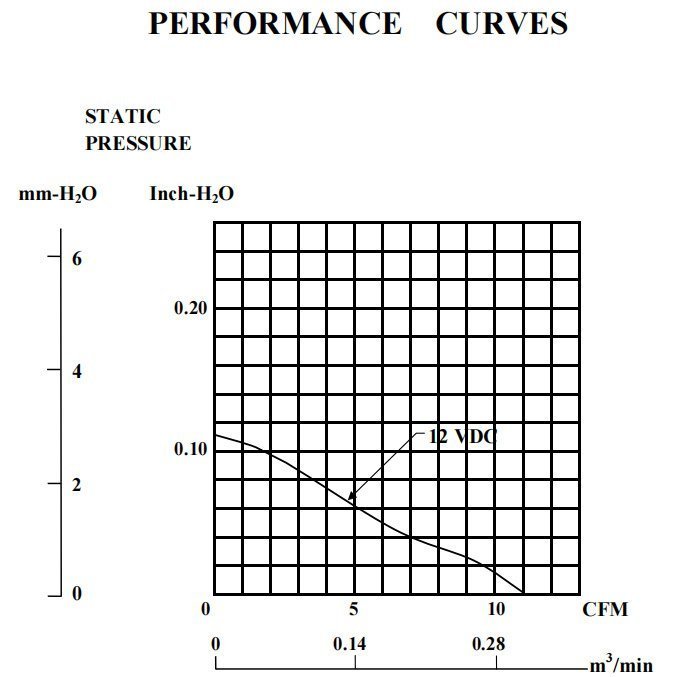 Size (mm) Air Flow (CFM) Size (mm) Air Flow (CFM) 60x60x25 17.5 ~ 18 120x120x38 70 ~ 124 70x70x25 28 ~ 29 171x151x51 80 ~ 239 80x80x25 40 ~ 41