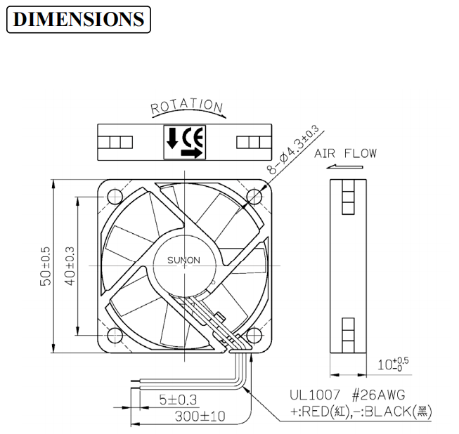 Size (mm) Air Flow (CFM) Size (mm) Air Flow (CFM) 50x50x15 2.6 ~ 5.4 97x94x33 22.4 ~ 30.5 50x50x20 4.8 ~ 5.7 97x95x33 44.2 ~ 54.7 60x60x15 3.9 ~ 5.7