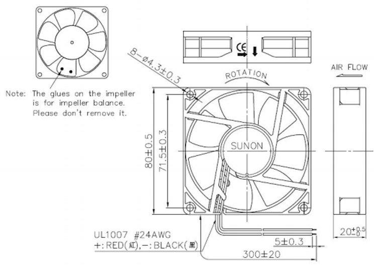 176x176x89 315 ~ 335 80x80x38 23 ~ 31 Φ171x51 203 ~ 239 92x92x25 21 ~ 54 Φ254x89 425 ~ 870 120x120x25 46 ~ 80 Sunon交流鼓風(fēng)機(jī)系列 (120x120x31mm)